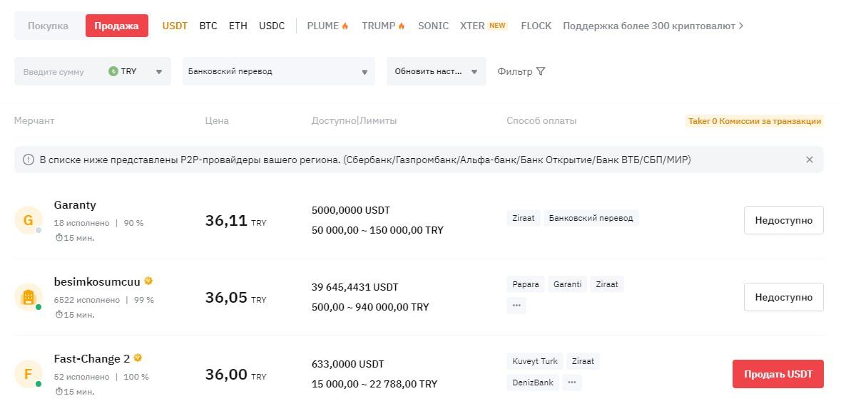 Перевод должен быть на сумму не менее 250 TRY. Деньги приходят в рабочее время в течение 15 минут. В P2P-сделках биржа является гарантом исполнения обязательств между сторонами сделки.