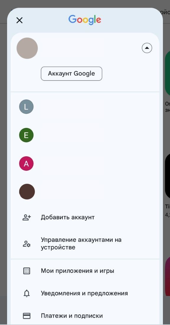 Откройте Google Play, кликните на стрелку возле вашей фотографии, выберите "Добавить аккаунт".