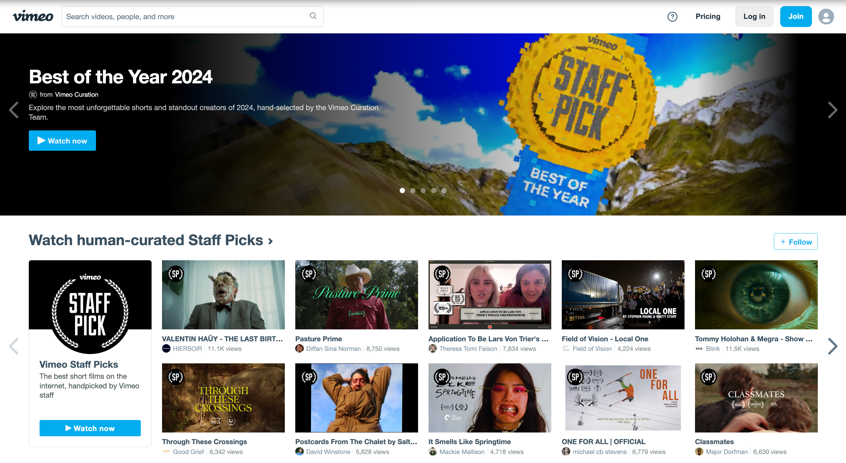 Vimeo: платформа с видео в высоком качестве без рекламы от профессионалов индустрии кино и анимации.