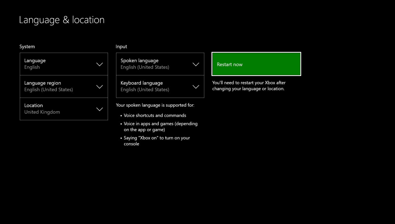 В пункте «Язык и локация» выберите нужное местонахождение и перезагрузите консоль.