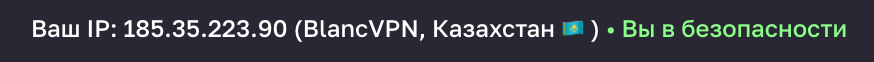После подключения откройте сайт BlancVPN и обратите внимание на панель в верхней части страницы. Если написано "Вы в безопасности" – значит, всё настроено правильно.
