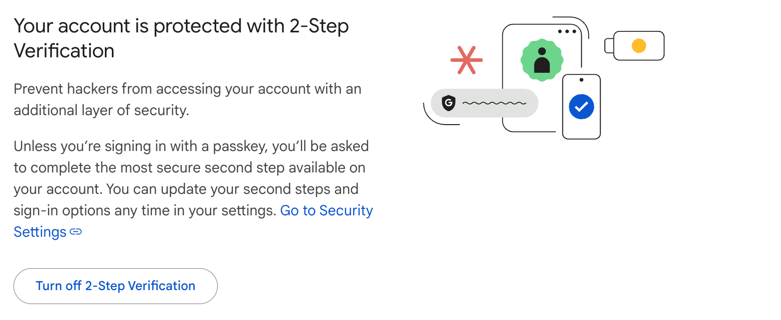 В аккаунте Google найдите пункт “Безопасность” (Security), “Вход в Google” (How you sign in to Google) и нажмите ”Включить двухэтапную аутентификацию” (2-Step Verification). Выберите способ: биометрия, подтверждение входа на девайсе, где вход уже выполнен, или приложение-аутентификатор. Подтвердите выбор вводом пароля от Google-аккаунта.