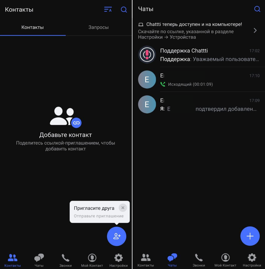 Регистрация в Chattti не требуется. Сервис работает по приглашениям: пользователь может добавить собеседника, прислав ему свою ссылку или QR-код. Разработчик утверждает, что мессенджер не собирает личные данные, а историю переписки хранит только на устройстве пользователя.